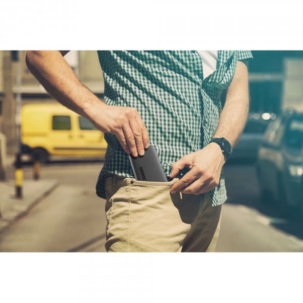 ELITE 20000 is a portable charger with a capacity of 20000mAh that provides up to 144 hours of extra charging for all smartphones. This charger features two USB-C ports delivering 18W input and 20W output, along with one USB output port, each rated at 18W, for charging smartphones. It is possible to charge up to three devices simultaneously. ELITE 20000 is equipped with an LCD display that provides information on the remaining charge percentage. It is designed with a premium look, compact dimensions, and ultra-lightweight for both practicality and elegance.
