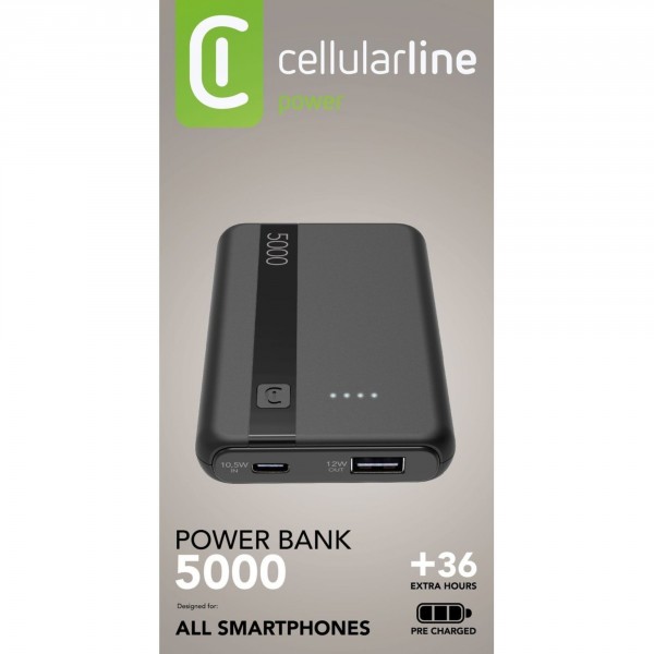 The new Power Bank 5000 is the portable charger with the best quality/price ratio, ensuring optimal performance for emergency charging, delivering up to 12W of power. This charger is equipped with a 10.5W USB-C INPUT port for charging the Power Bank and a 12W USB OUTPUT port for charging smartphones or other small devices. Equipped with bright LEDs indicating the remaining charge status, this Power Bank features a sleek design, ideal for any emergency situation.