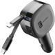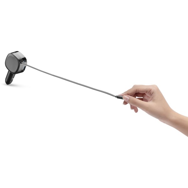 The 60W car charger with retractable cable is the perfect solution for safely charging smartphones and tablets during your travels, thanks to a 30W USB-C Power Delivery port, an 18W USB-A port with Quick Charge, and a 70cm retractable USB-C to USB-C cable with 30W PD support. It provides a total simultaneous output of up to 60W, is compatible with 12V/24V cigarette lighter sockets, and features charging optimization systems along with overload and short-circuit protection.
