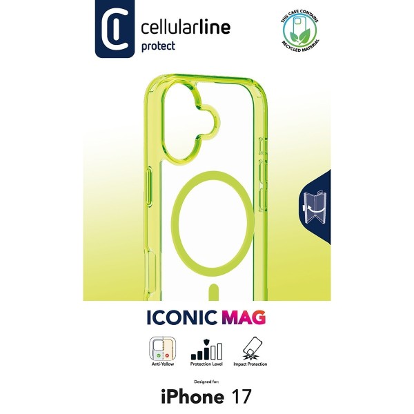 ICONIC MAG is a case that combines color and transparency, designed to interact perfectly with the MagSafe® ecosystem. Thanks to the integrated magnets, the case aligns with the phone ensuring optimal compatibility with all MagSafe magnetic accessories. The colored semi-transparent edges combined with the full-color magnet add a touch of style, while the dual-material structure offers greater protection for edges and connectors. The raised edges in the camera and display area provide additional protection against bumps and scratches. With ICONIC MAG, your phone is protected and always ready to be used with the MagSafe ecosystem.