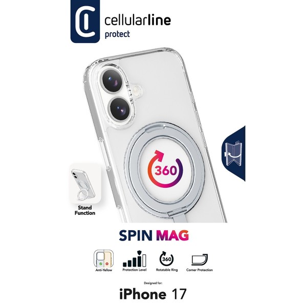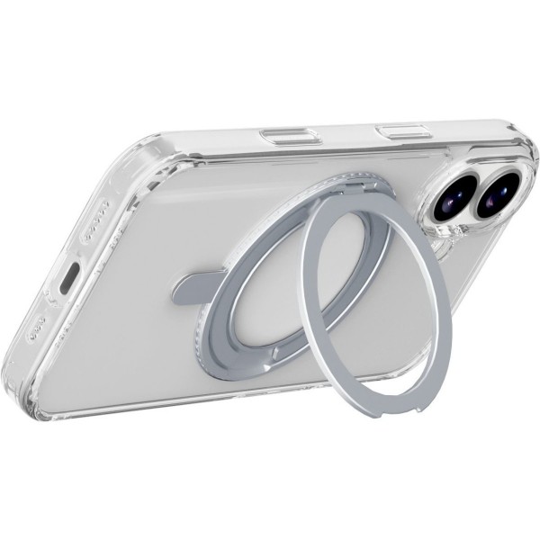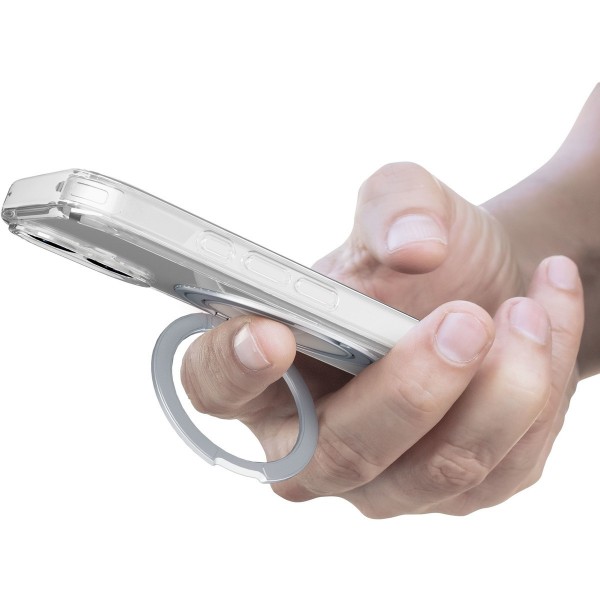 SPINMAG is the transparent case with a rotating ring stand, fully compatible with the MagSafe® ecosystem. Its innovative design includes a 360° rotatable ring that offers multiple functionalities, such as the ability to transform into a stand or stand.The integrated ring becomes an integral part of the case when not in use, making it fully compatible with MagSafe® accessories. The raised edges around the display and camera offer extra protection against accidental bumps and drops.