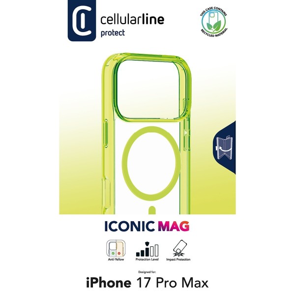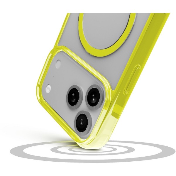 ICONIC MAG is a case that combines color and transparency, designed to interact perfectly with the MagSafe® ecosystem. Thanks to the integrated magnets, the case aligns with the phone ensuring optimal compatibility with all MagSafe magnetic accessories. The colored semi-transparent edges combined with the full-color magnet add a touch of style, while the dual-material structure offers greater protection for edges and connectors. The raised edges in the camera and display area provide additional protection against bumps and scratches. With ICONIC MAG, your phone is protected and always ready to be used with the MagSafe ecosystem.