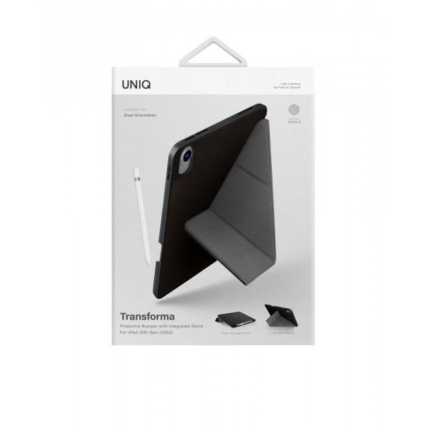 Protective tough TPU bumper with built in Apple Pencil holder. 3 viewing angles. Landscape, Portrait and Typing in one transformation.