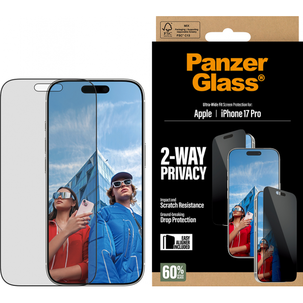 PanzerGlass Privacy Screen Protector Ultra-Wide Fit - Clear - for iPhone 17 Pro
