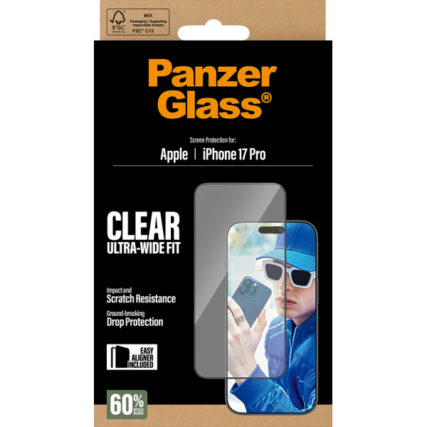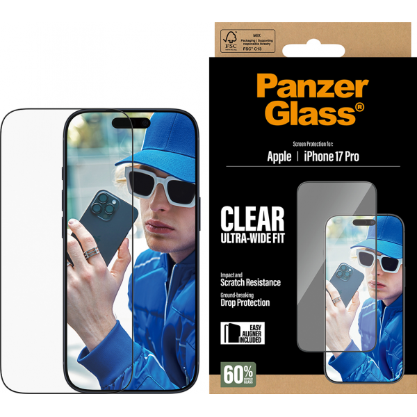 PanzerGlass Screen Protector Ultra-Wide Fit - Clear - for iPhone 17 Pro