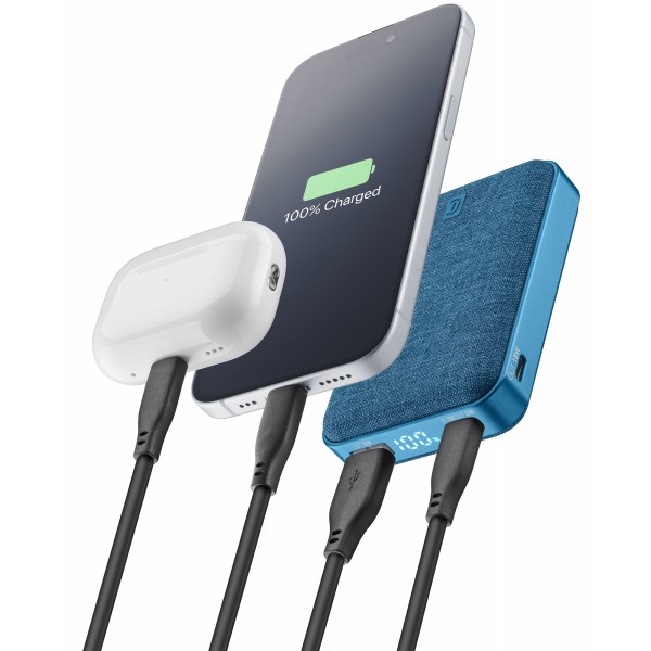 Le GLAM PD 10000 est le chargeur portable 10000mAh qui offre jusqu'à 72 heures de charge supplémentaire pour votre smartphone. Équipé de 3 ports : un USB-C avec entrée Power Delivery 18W et sortie 20W, un deuxième port de sortie USB-C avec 18W, et un port de sortie USB-A avec 18W, il vous permet de charger jusqu'à trois appareils simultanément de manière rapide et efficace. L'écran LCD pratique vous permet de surveiller facilement l'état de charge restant du power bank. Son design élégant, avec son revêtement en tissu et ses deux finitions haut de gamme, apporte une touche de sophistication et de praticité. Le GLAM PD 10000 est la solution idéale pour ceux qui recherchent un power bank puissant, élégant et fonctionnel, parfait pour vous accompagner dans vos journées les plus chargées.