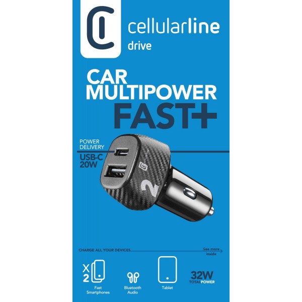CAR MULTIPOWER 2 FAST+ est le chargeur embarqué à 2 ports (USB-C et USB) conçu pour charger deux appareils en même temps. Grâce à sa technologie Device Detect, chaque port reconnaît tout appareil connecté et lance la bonne charge. Le port USB-C de 20 W est parfait pour les iPhones et les iPads avec charge rapide USB-C.