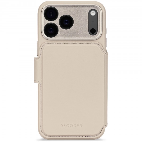 iPhone 17 Pro Max, Housse cuir wallet amovible MagSafe, beige