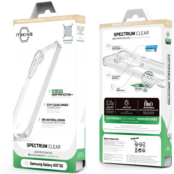 SPECTRUM_R a été certifié par le Global Recycled Standard pour l'utilisation de matériaux 100 % recyclables et pour avoir été produit avec des méthodes durables dans la mesure du possible. Il offre une protection optimale contre les chutes et une défense antimicrobienne contre le jaunissement.