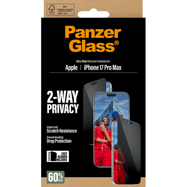 PanzerGlass Privacy Screen Protector Ultra-Wide Fit - Clear - iPhone 17 Pro Max