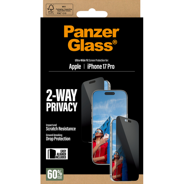 PanzerGlass Privacy Screen Protector Ultra-Wide Fit - Clear - pour iPhone 17 Pro