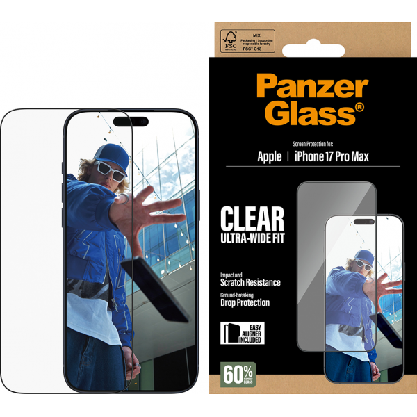 PanzerGlass Screen Protector Ultra-Wide Fit - Clear - pour iPhone 17 Pro Max
