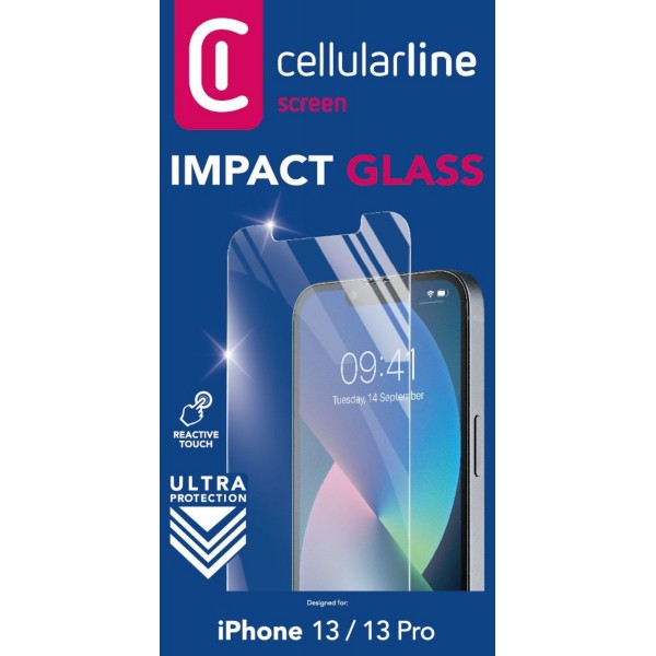iPhone 13/13 Pro, prot. d'écran verre trempé, transparent