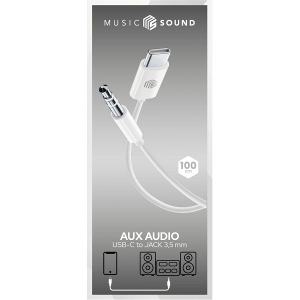 Audiokabel, 3,5mm jack mannelijk naar USB-C, wit