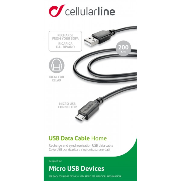 Data kabel, micro-usb home 2m, zwart