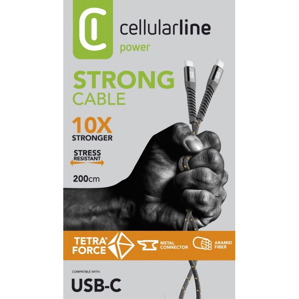 STRONG CABLE uit de TETRA FORCE-lijn is de meest robuuste kabel binnen het Cellularline-assortiment.
