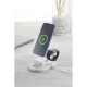 MAG TRIO is het magnetische draadloze oplaadstation dat ontworpen is om smartphones, draadloze oordopjes en smartwatches tegelijkertijd op te laden. Dankzij de Qi2-certificering zorgt het voor snel opladen tot 15 W voor compatibele smartphones, met nauwkeurige magnetische uitlijning voor maximale veiligheid en efficiëntie. Met de magnetische pad kan de smartphone zowel verticaal als horizontaal worden geplaatst, terwijl de basis een speciaal gebied bevat voor het opladen van draadloze oordopjes met een maximale output van 5W. Daarnaast heeft de MAG TRIO een aanpasbare sleuf voor het opladen van Apple en Samsung smartwatches, waar de originele kabel (niet meegeleverd) in gestoken kan worden.