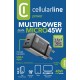 Deze MULTIPOWER MICRO 45W reislader laadt elk apparaat met een USB-C poort volledig veilig op en biedt de snelste oplaadmogelijkheid voor: smartphones, tablets en laptops die compatibel zijn met Power Delivery 45W oplaadtechnologie. Met de twee oplaadpoorten kun je tot 2 apparaten tegelijk opladen, terwijl de USB-C poort compatibel is met Samsung 45W Super Fast Charging 2.0. Dankzij de GaN-technologie is het formaat extreem klein, waardoor je het perfect kunt meenemen in tassen en rugzakken, zonder dat dit ten koste gaat van de hoge oplaadprestaties.