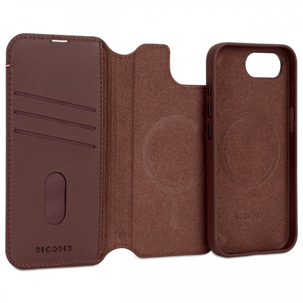 iPhone 16E, lederen hoesje wallet afneembaar, bruin