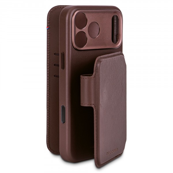 iPhone 17 Pro Max, Lederen hoesje wallet afneembaar MagSafe, bruin