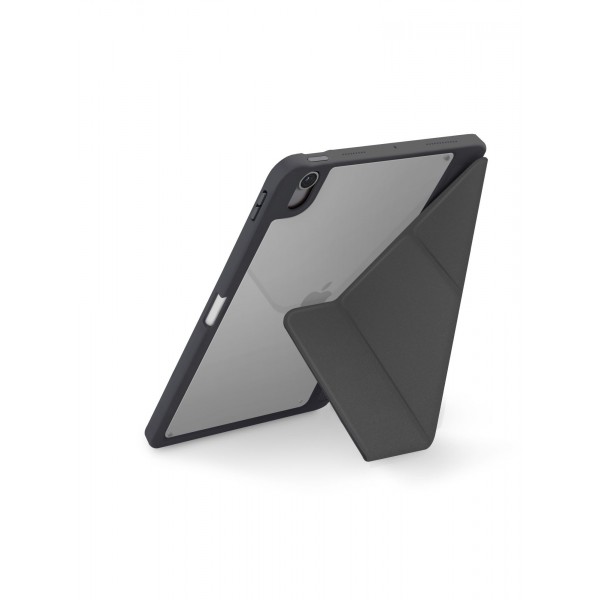 Ultraslank en lichtgewicht ontwerp met Y-vouwfunctie en drie kijkstanden: liggend, staand en typen. Verbeterde pennensleuf voor eenvoudige toegang en gelijktijdig opladen van de Apple Pencil of Pixo Stylus. De slanke kunstlederen buitenkant, versterkte pc-hoeken en matte achterkant zorgen voor een stijlvol geheel dat zowel de vorm als de functie ten goede komt.