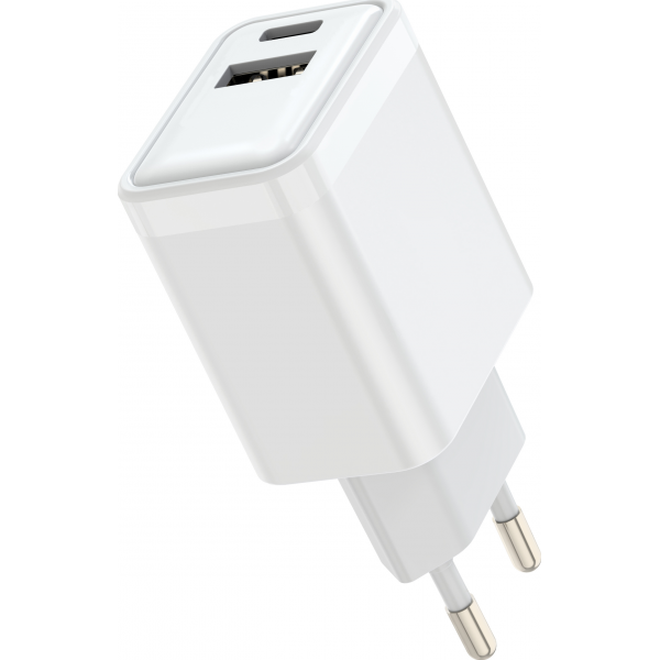 Grab & Go by Sinox - 12W Dual USB-A & USB-C Wall Charger - Wit