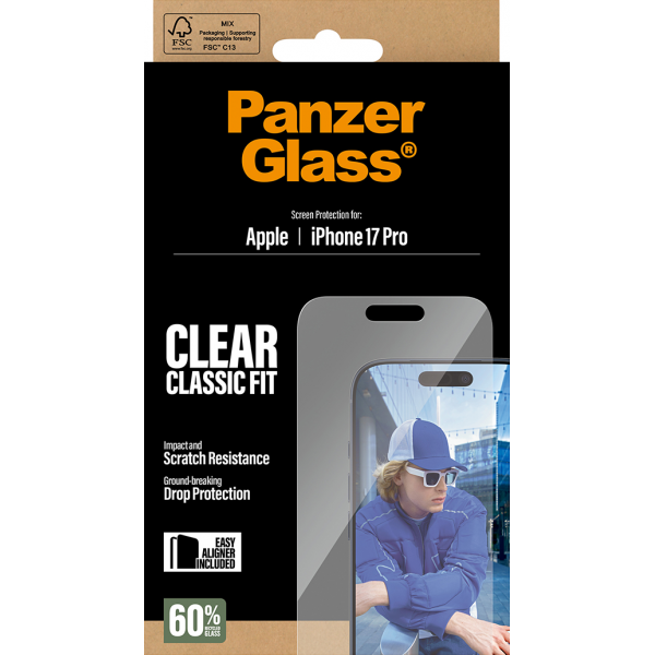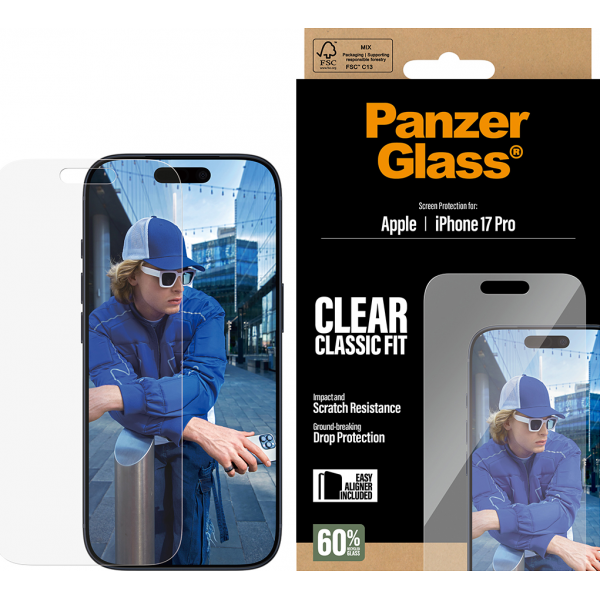 PanzerGlass Screen Protector Classic Fit - Transparant - Apple iPhone 17 Pro