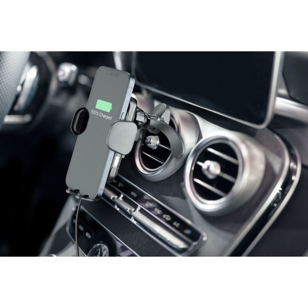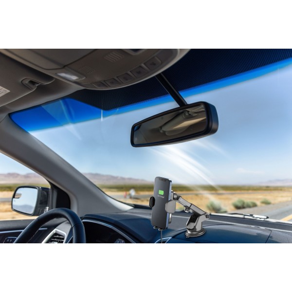 HUG AIR is de elektronische smartphonehouder voor in de auto met Qi draadloos opladen. De Wideactive™ 1 technologie met single coil elektronica zorgt voor efficiënt en continu draadloos opladen zonder dat de smartphone oververhit raakt. Het bijzondere aan het product zijn echter de geïntegreerde sensoren die ervoor zorgen dat de houder automatisch opent en sluit, waardoor het gemakkelijker wordt om de telefoon in de houder te plaatsen en er weer uit te halen. Het pakket bevat twee verschillende bevestigingssystemen: een zuignap om de houder eenvoudig aan de voorruit of het dashboard te bevestigen en de innovatieve klittenbandsluiting die zowel aan standaard als ronde ventilatieroosters kan worden bevestigd.